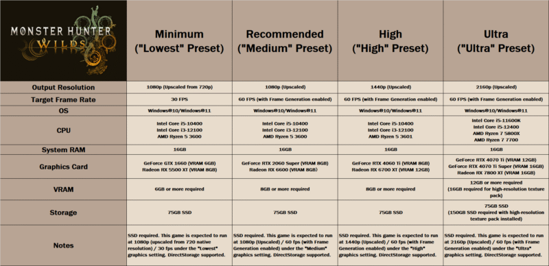 Capcom publica requisitos oficiales de Monster Hunter Wilds en español